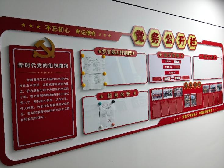 在实验室办公区域,一栏实用美观的“党务公开栏”格外引人注目,它记录和承载着支部各项工作的开展,并接受党员、群众的监督。通过设立这一“公开栏”,实验室党支部着力将其打造为展示支部形象的重要窗口和提升支部战斗力的坚实阵地。